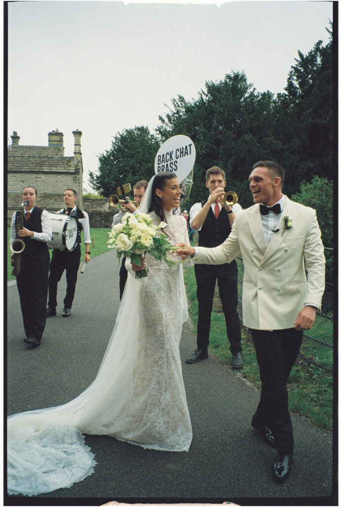 Their ceremony took place at Bolton Abbey Priory on a beautiful, sunny September day. As Hollie & Will exited the church, guests were greeted by a surprise set from Back Chat Brass and from that moment on, the party officially began. Everyone joined in singing along and dancing right outside the church and then the band led everyone all the way back up to the Tithe Barn, turning the walk into an impromptu procession filled with music and so much energy.