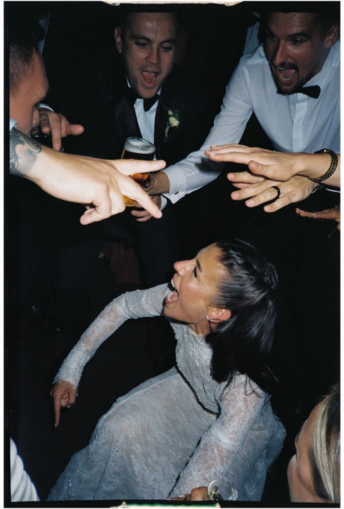 When it came to the evening celebrations, Hannah & I agreed that I would focus capturing the dance floor solely on 35mm film, while she covered the same moments digitally. It’s something I love to incorporate into weddings whenever I can.
